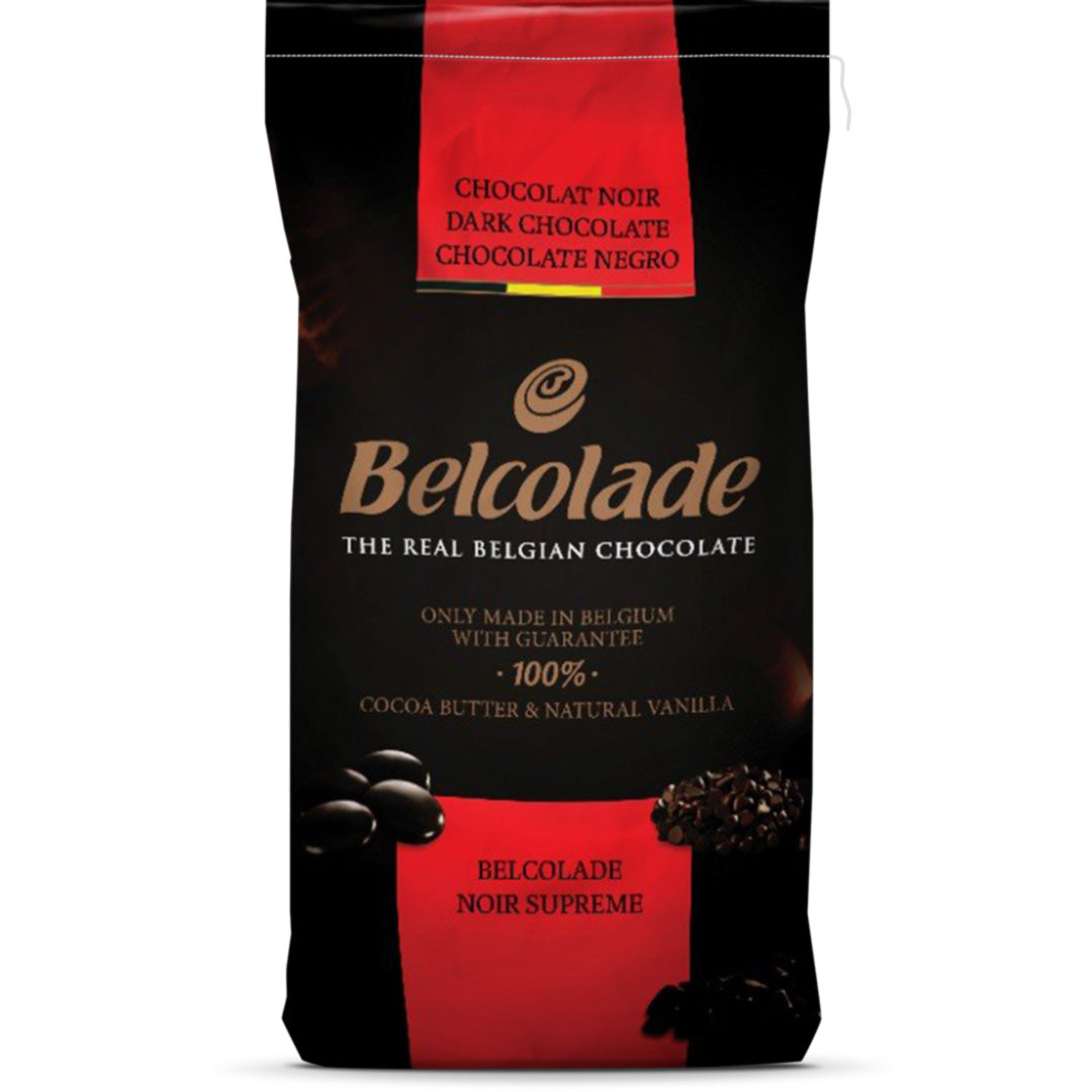 Belcolade Dark chocolate are small, disc-shaped pieces of dark chocolate, similar to chocolate chips or buttons. They are made from dark chocolate, which contains a higher cocoa content compared to milk chocolate, resulting in a more intense chocolate flavor with less sweetness.