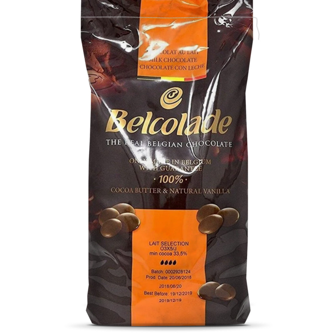 Belcolade Milk chocolate are small, disc-shaped pieces of milk chocolate, similar to chocolate chips or buttons. They are made from milk chocolate, which contains cocoa mass, cocoa butter, sugar, milk solids, and sometimes additional flavorings such as vanilla.
